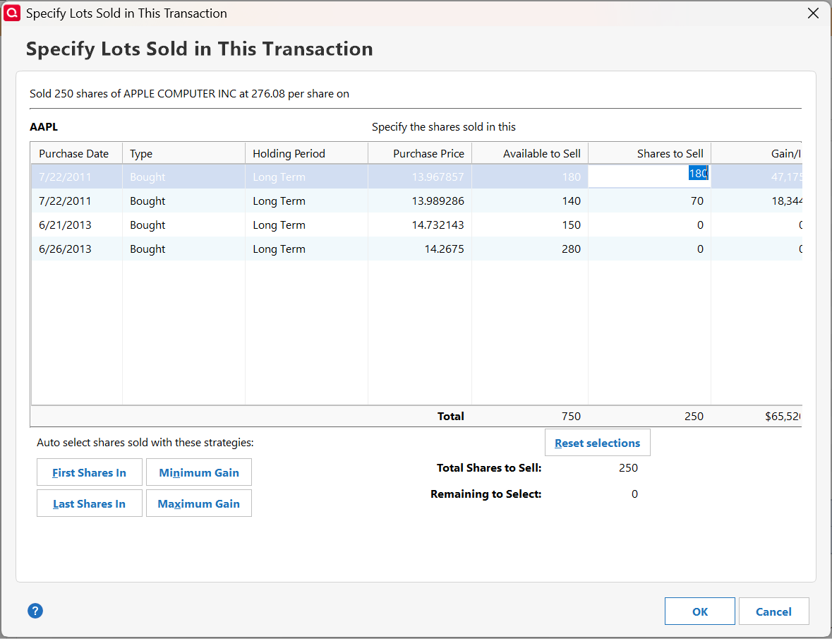 Or at Would be nice on the Specify Lots Sold screen as well: