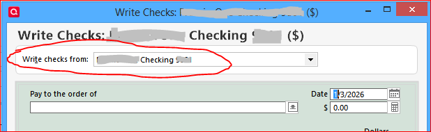 When creating the check transaction, in the Write and Print Checks dialog, did you select the correct Checking account?