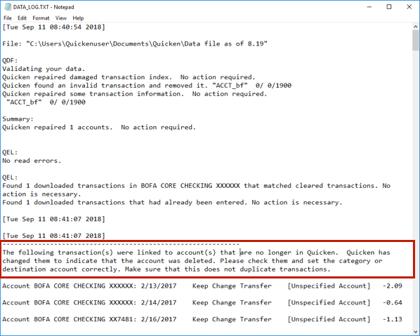 - Review the Data_Log.txt for messages pertaining to the quality of your data and resolve any that are advised with instructions you should follow. This may require that you delete, edit, or reenter transactions manually.