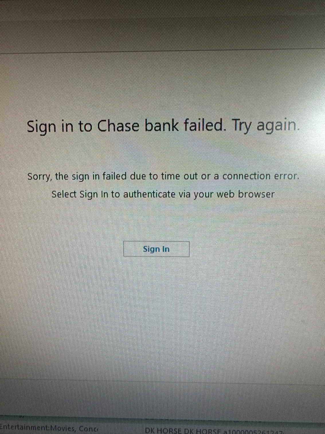 When I try to add a new Chase account, I am prompted to sign in to the Chase web page to authorize the new accounts. I do this, the accounts are successfully authorized by Chase, and then I am returned to Quicken. Quicken then reports that the sign in failed and the accounts aren't added. Numerous attempts result in the same error. I have already tried different browsers and disabling extensions….still no luck.