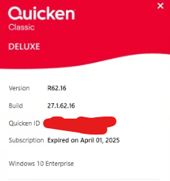 I'm using Quicken Classic R62.16 Build 27.1.62.16 on Win 10.