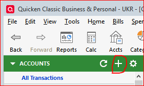 1. Quicken's instructions said, "Click the '+' sign at top of accounts list. BUT, there is no + sign anywhere to be seen.