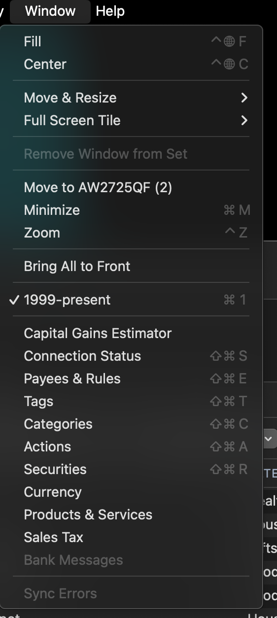The only 2 places I can find various settings are the bar on the top of the desktop, and under Quicken > Settings. Where do I find things like Currency List, Category List, etc?