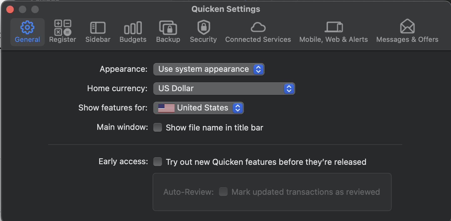 Note that in Quicken Mac, support for multiple currencies is quite limited; full multi-currency functionality is a long-requested feature, and one the developers have said is planned for sometime in the future. You can set up accounts in different currencies, but reports and dashboards must be run separately for each currency; there is no conversion or combination at this time.