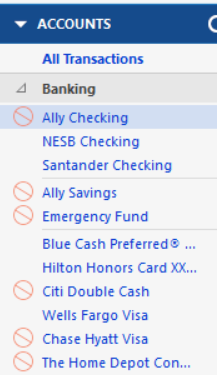 At any rate, my CC-800 errors had a different twist today. I successfully reconnected the Chase credit cards and checking account associated with my login. I then tried to do the same thing with the two Chase credit cards associated with my spouse's login, and Quicken told me that certain Chase accounts (i.e., mine) were not found and should be deleted. The accounts that I own then had the red circle on them, despite having been fixed minutes earlier. I suspect that if I had tried to fix them, the red circles would have moved to my wife's accounts.