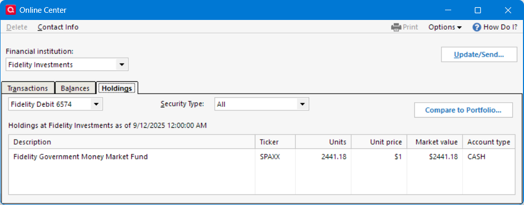 Yes, that seems to be the case for all the Fidelity accounts if I check Holdings in Quicken. Core money market fund For example, Holdings in Quicken show