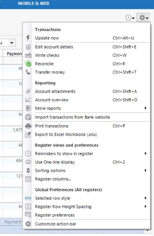 Are you referring to the gear menu, normally at the top right of the account, that leads to Edit account details, Reconcile, etc.? Hopefully Quicken did not intend to make that inaccessible when your subscription expires.