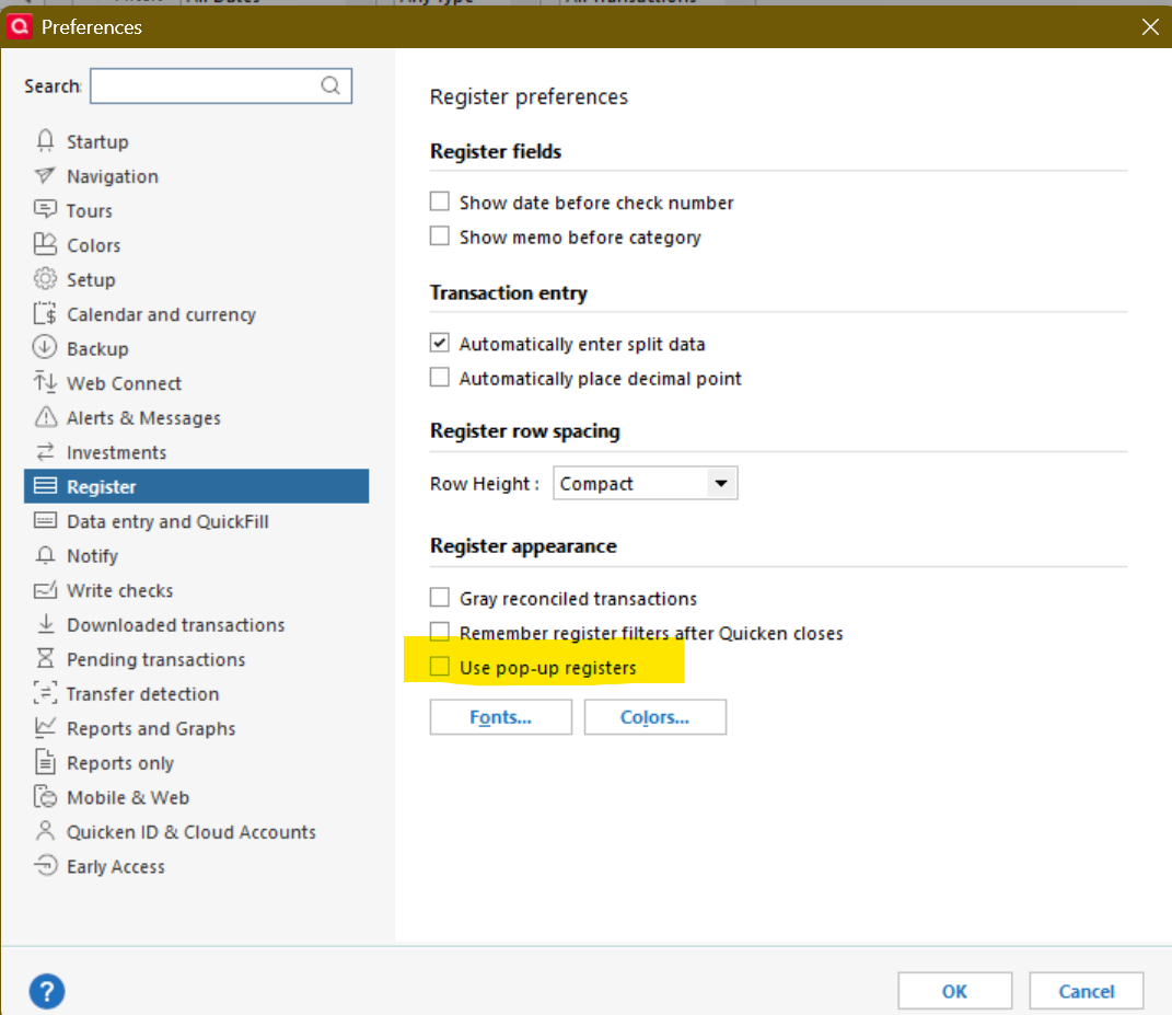 Can customizing the Action Bar and adding another icon, e.g., the "Reminders to show in register", make Quicken move the Action Bar icons to where they should be?