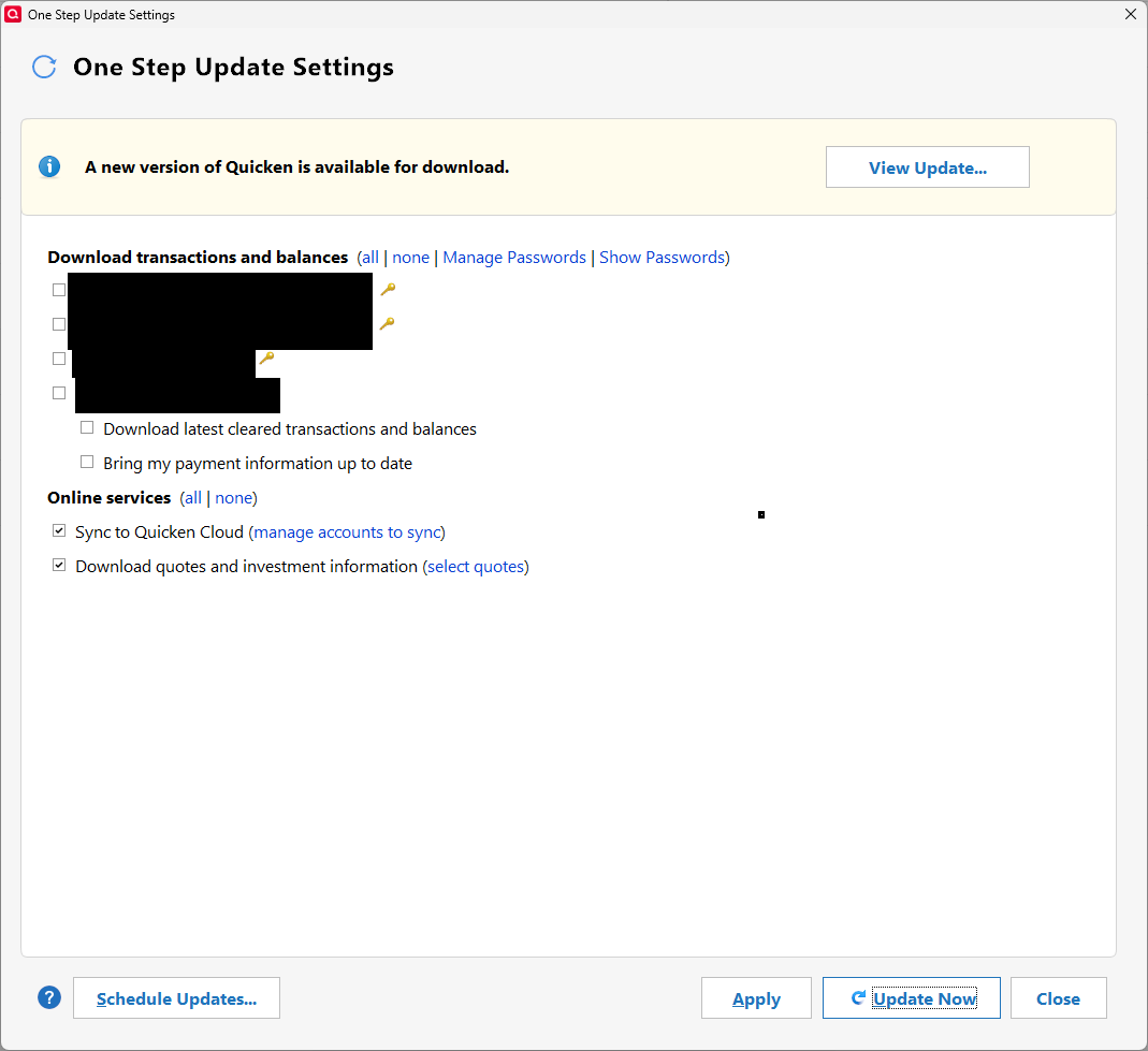 To clarify, are you still experiencing this issue, or did it resolve after updating to the latest version of Quicken?