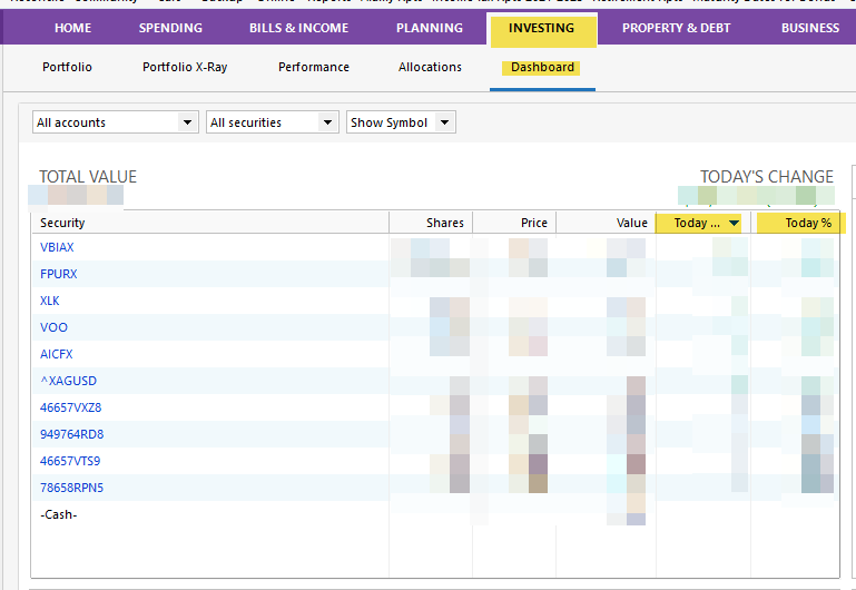The table is presently sorted on the Security column and alternative user sorting choices are not sticky. I always sort on Today's Change or Today % from high to low. See attached image.
