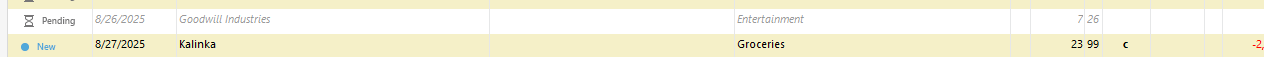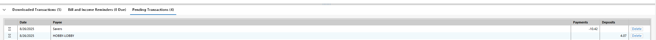 Past that if one chooses to include the Pending transactions and has the transactions going directly into the register it looks like this: