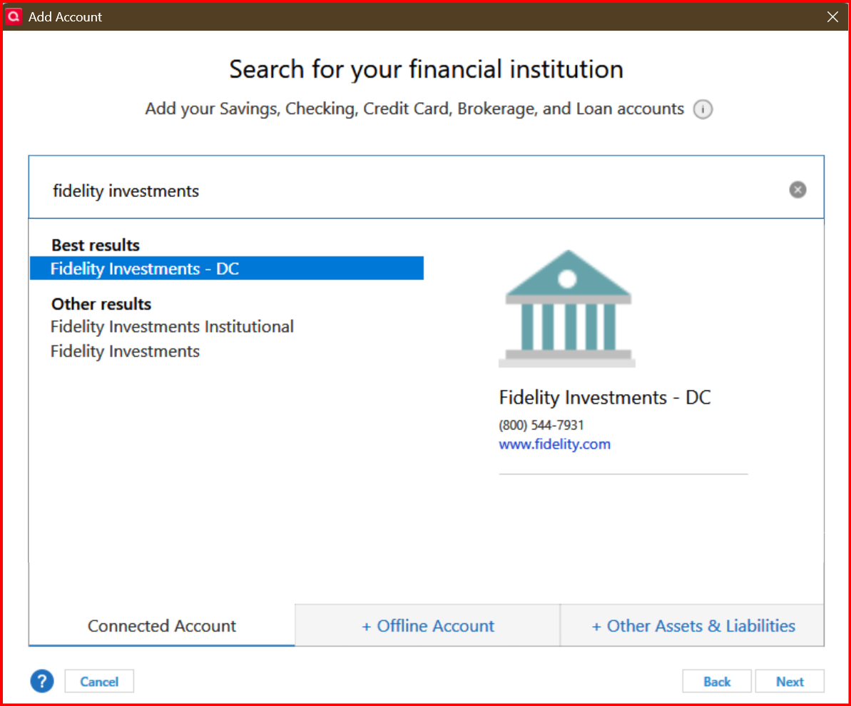 Thank you for reaching out to the Community with this question. To help troubleshoot, please provide more information. What kind of account is this (for instance, checking, savings, brokerage, retirement, etc.)? When you say that Fidelity doesn't show the account for you to link, are you referring to not seeing the option to authorize the account on Fidelity's website, or do you mean you're not seeing the option to link it in Quicken, on the Add/Link screen? If possible, please provide a screenshot of what you're seeing (with any personal information redacted). If needed, please refer to this Community FAQ for instructions on how to attach a screenshot. Alternatively, you can also drag and drop screenshots to your response if you are not given the option to add attachments.