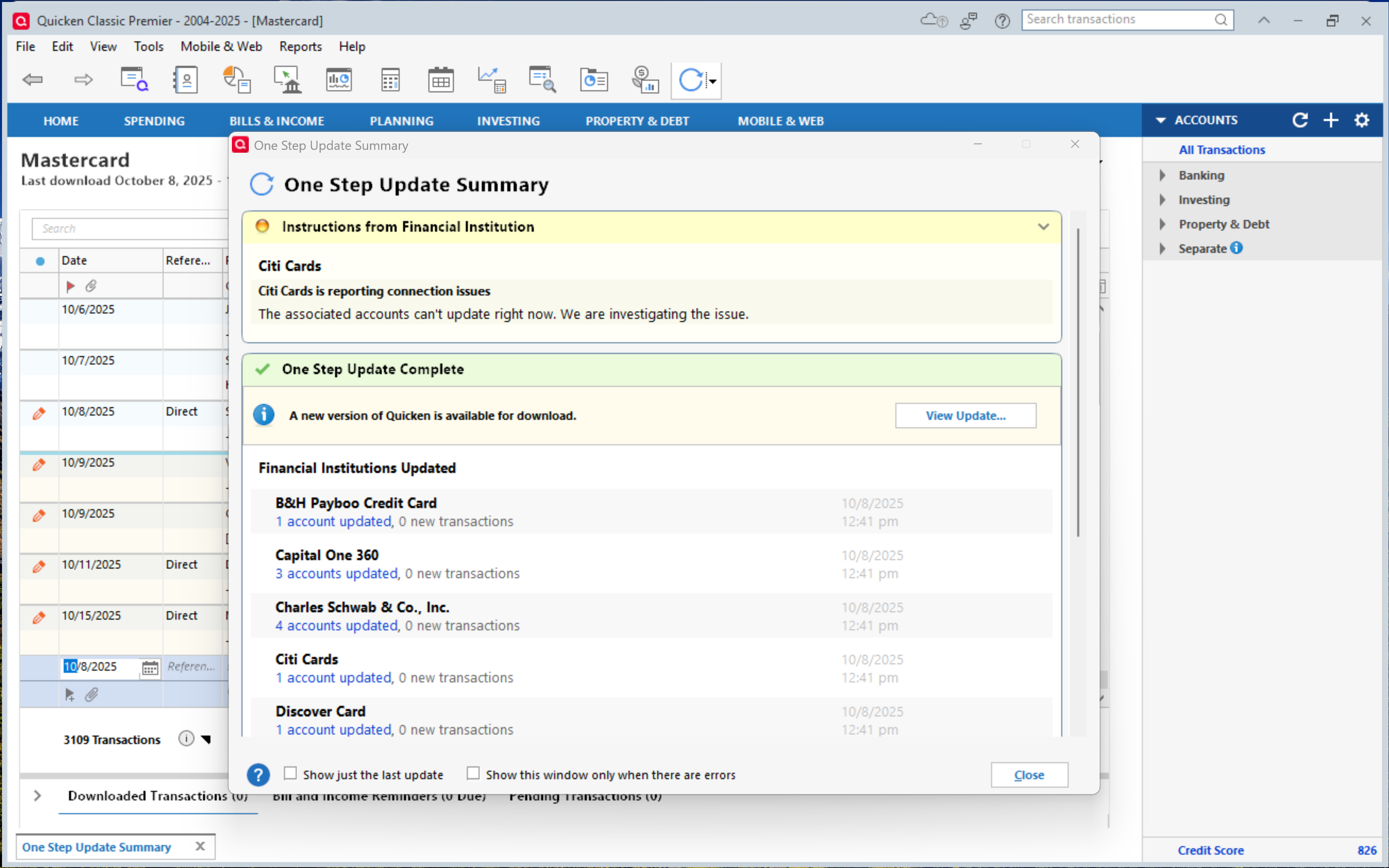 - I deactivated my Citibank in Quicken.