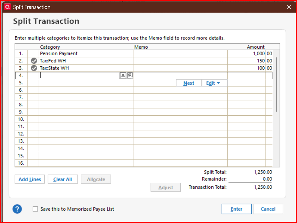 I receive a pension and have taxes and insurance deducted. How do I record this in Quicken? Do I add it with the Payroll Wizard?