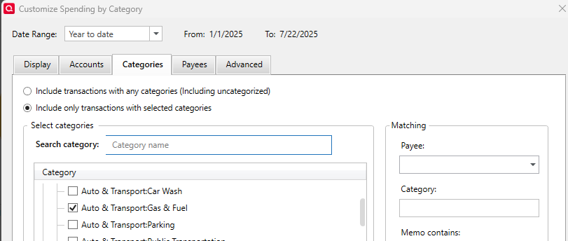 - When you go back to the saved report after adding a new account or category, do you notice any other report settings being altered (such as date range or customization filters)?
