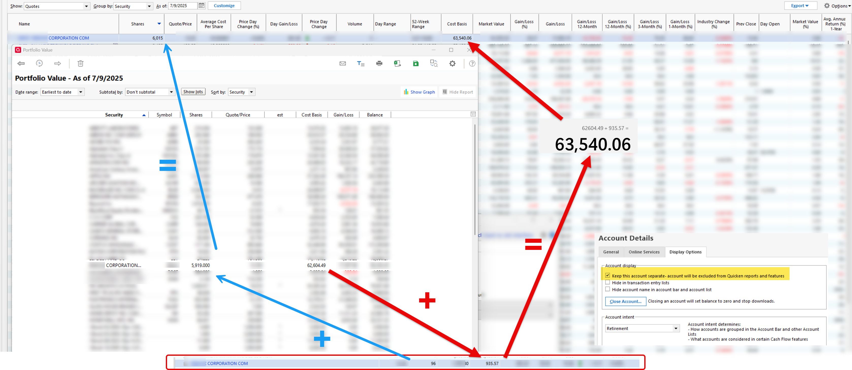 I have run a validate on my file and also have unchecked the "Keep this account separate" and then checked it again and it still is including shares from that account.