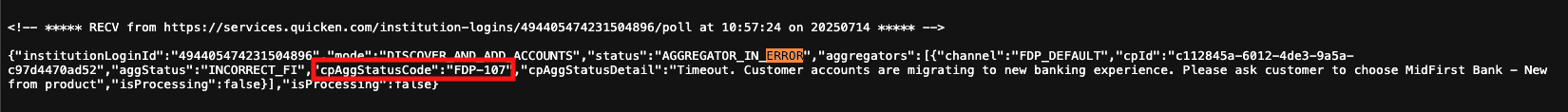 Thank you for letting us know you're seeing this issue also. If there is a ticket number on MidFirst Bank's side, they have not shared that information with us. All I am able to see is the internal ticket on our end, CTP-13309.