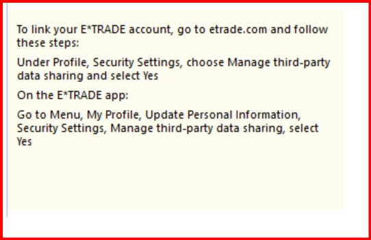 - If you have more than one account with E*Trade, do steps #1 and #2 for each of them.