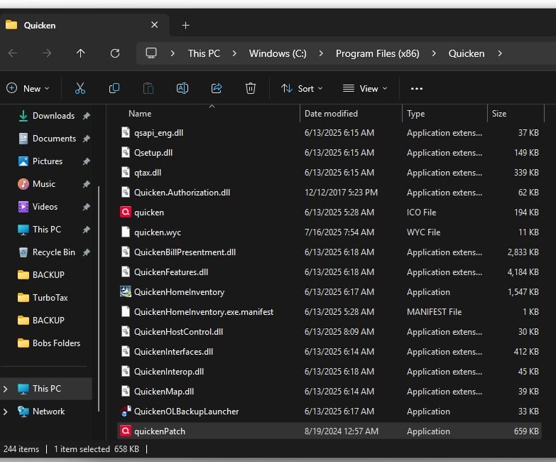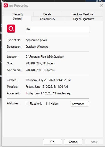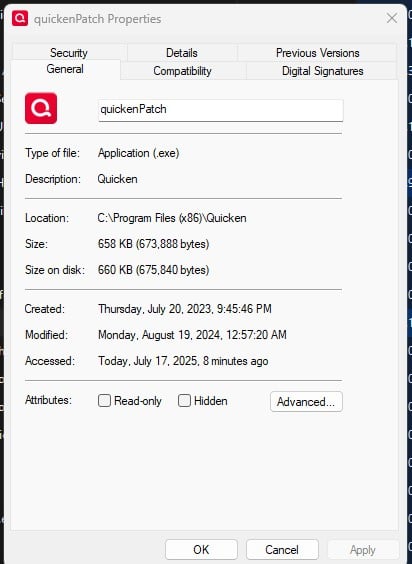 Shot 2.2 shows Properties of Quicken of Shot 2 and calls it Quicken Patch. Note that it shows to have been created in 2023 and modified in 2024??????