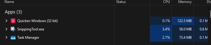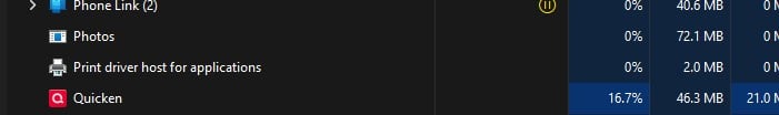 On only 1 computer, after Quicken opens and is running, I can go to Task Manager and it also shows a Quicken exe file installing even though Quicken is running fine, This file shows to be a Quicken Patch exe that is installing. WHAT is this?????? When it shows in Task Manager to have installed that Quicken icon goes away in Task manager. If I close Quicken while this file is installing and try to shut down the computer I can't shut down the computer until the patch is installed. This occurs each time I use Quicken and only on this 1 computer. Screenshots below show better than I can explain.
