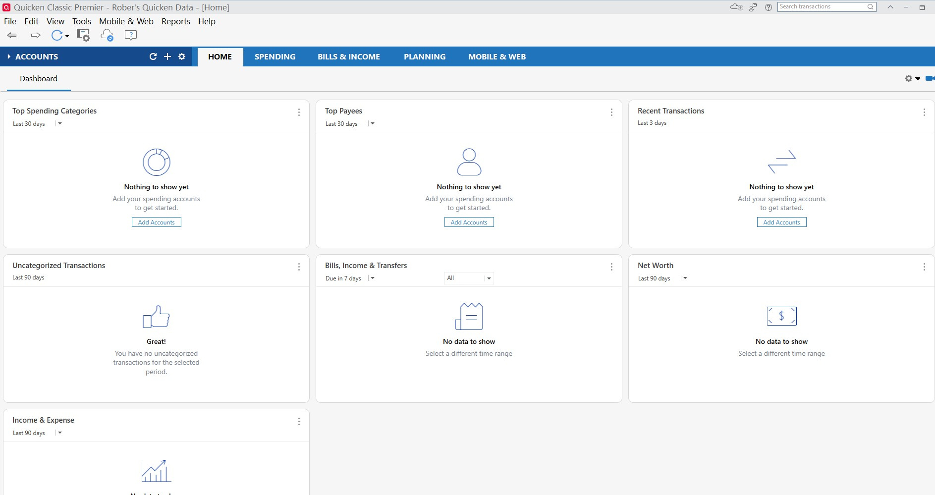 One question: With new install of Quicken my data file loads upon start as normal. There is a second data file named "Rober's Quicken Data" which bring up a Dashboard with no data. Never had a data file choice like this before so what is it and should I delete it at all OR if no problem how can I delete it as a choice of data files to open?