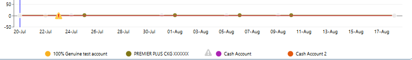 On the "Bills & Income" tab, "Projected Balances" sub-tab, if an account went into a negative balance within the display period, Quicken used to show a warning icon at the bottom (legend) to the left of the account name. Recently it stopped showing that, and now just shows the normal colored circle. This is especially bad when an account is overdrawn by only a few dollars, since it may not be obvious that the balance has gone below the zero line.