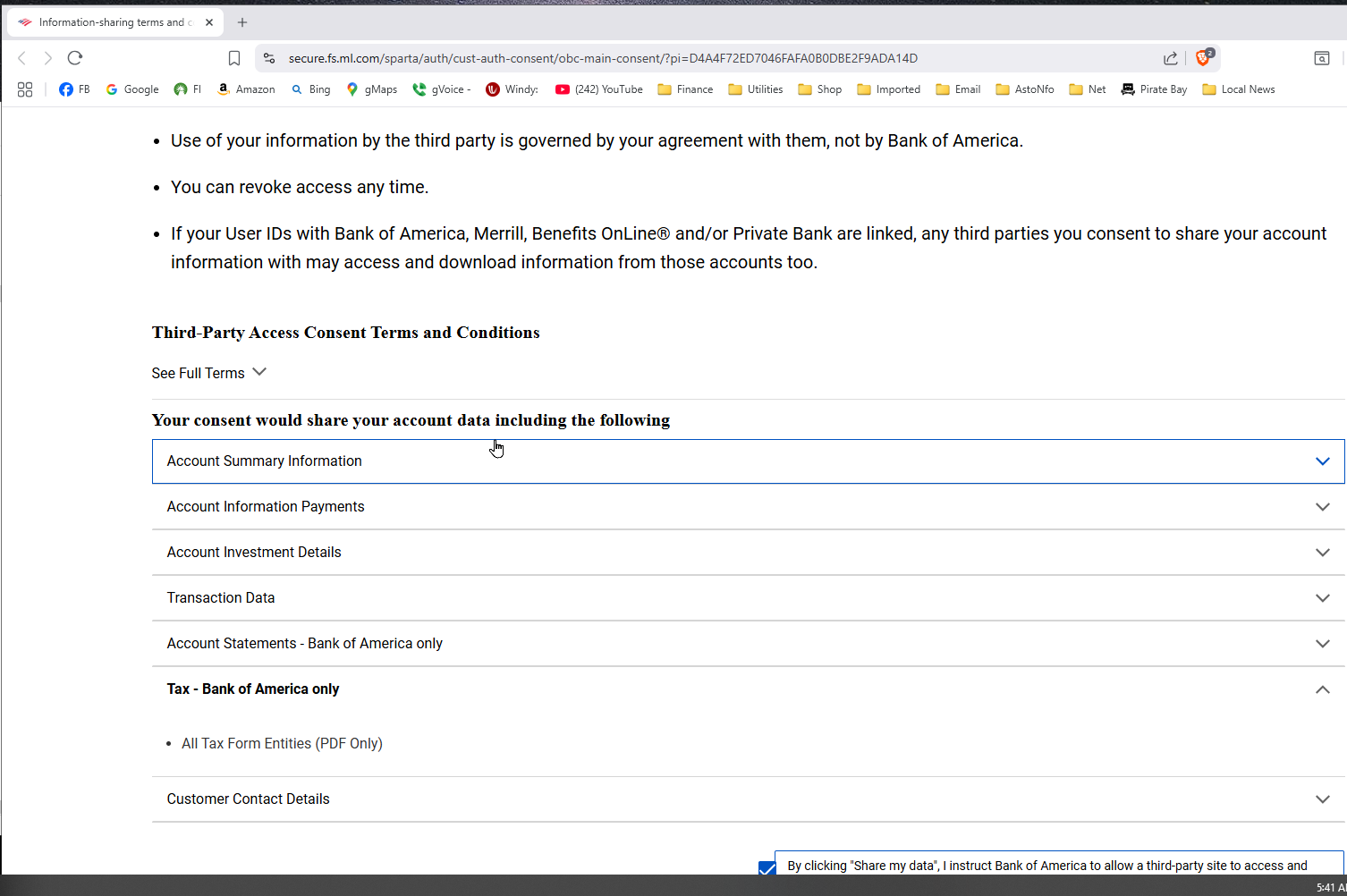 I don't recall in the past Quicken needing my tax data. So why now? According to BOA the authorization means Quicken can share or sell the data to data brokers