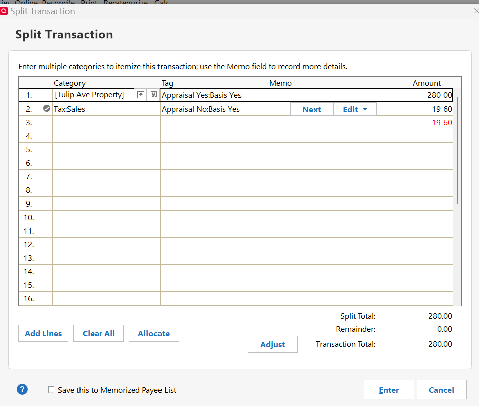 7/20/25 to list the balances of all accounts. When I compare this to the same report run today 7/27, There are differences, which I have determined are due to changes to transactions involving credit card accounts with split transactions where one of the categories is Sales Tax. The split becomes out of balance by the amount of the sales tax. The transaction amount is reduced by the amount of the sales tax. If I click the ADJUST button, it corrects itself. It is not every split involving Sales Tax - just some of them.