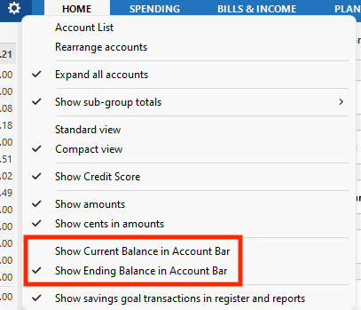 Thank you for letting us know you're seeing this issue. When did you first notice this issue? Is the account bar (on the left side of the screen, by default) set to show the current balance, or the ending balance? You can check this by clicking the gear icon near the upper right of the account bar and seeing which option has the checkmark by it.
