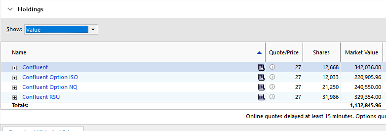 Originally I was going to ask if all "flavors" of Confluent was stock that you actually owned outright, but then I didn't. So, do you own outright all the shares in each and every flavor of Confluent show in the Holdings view?
