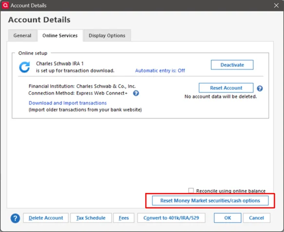 I say magical because I have never figured out even with Direct Connect let alone Express Web Connect + what it is that tells Quicken that it can treat a given security as cash. But one thing I know for sure, it isn't up to the user.