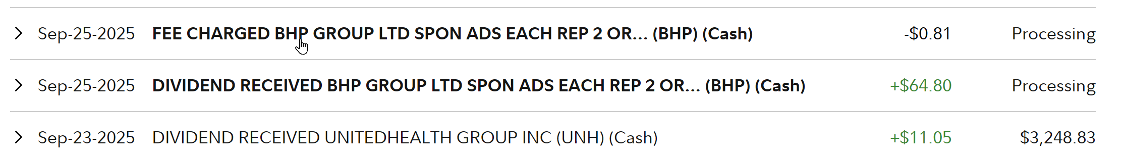Just looked today and the "Activity Tab" now shows the 9/25 transactions as "Processing" and these 9/25 transactions have not added to Fidelity Core cash yet and not downloaded yet. Not sure WHEN Fidelity actually syncs up today's transactions with cash balance, but it is 8:45pm PST here and not processed yet.