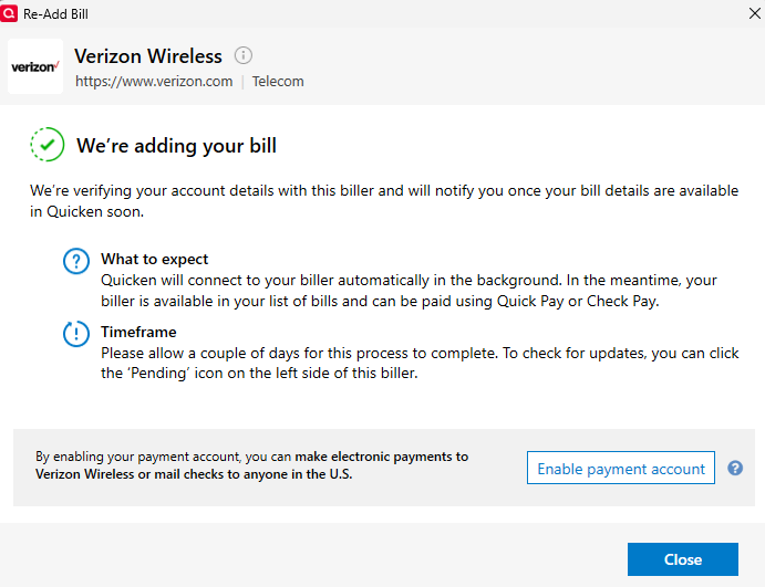 @Quicken Anja is there any way to ask the new eBill provider if anyone has successfully connected with Verizon?