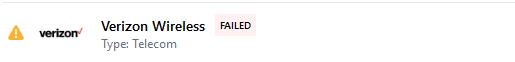 Thanks for the update, but I am NOT receiving the "NullPointerException" error. My setup and submission seems to go OK, I see Verizon go to Pending, but then later, it says Failed with mismatched information. Maybe the known issue is related, but this seems like something different. I think in my case, all my information (which is directly from my Verizon account) is somehow mismatching with what Fiserv is looking for, but I have no idea what is mismatched or what other combinations to try.