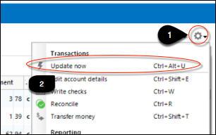 1. From your account register, select the Actions gear icon at the very top right of your register (Ctrl + Shift + N).
