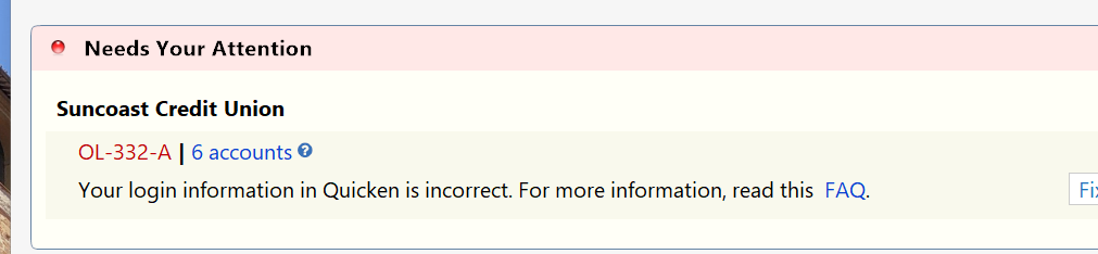 You mentioned that Suncoast Credit Union recently changed their account numbering system. Did the document they sent you say when the change took effect? When you spoke with their support, were they able to confirm whether they'd already updated their servers that communicate with Quicken?