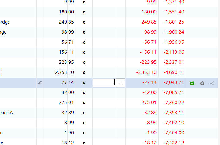 Quickly checking some of the numbers, the math seems to work correctly when going from bottom to top.Filtered register? Unexpected register sort order? "Missing" data? Unusual Running Balance?