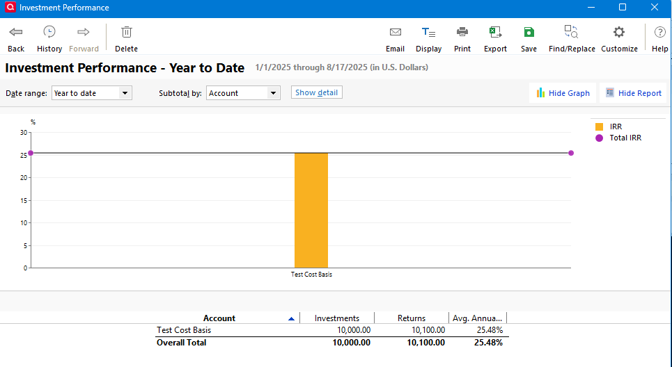 If I participate in this fund for 10 years, I will earn 40 quarterly dividends, my "cost basis" will grow every time, and my so-called "loss" will grow larger and larger. At tax time, if I use Quicken's numbers, I will owe nothing because I have a huge loss to declare when, in reality, I made a ton of money.