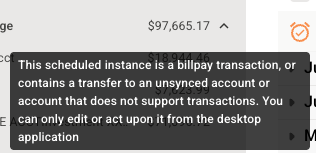 Reminders for billpay transactions, reminders for transfers to/from accounts that are not synced to Quicken on the Web, and reminders for accounts that do not support transactions also cannot be entered into your register through Quicken on the Web.