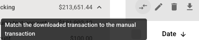 Click the 2 arrows icon (to the left of the pencil icon) to match the transactions.