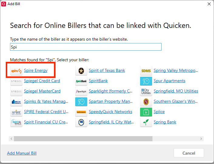 With the new update to Quicken Classic dated 08-18-25, the online biller Spire Energy is no long listed. I used to get the bill each month. It now is not available