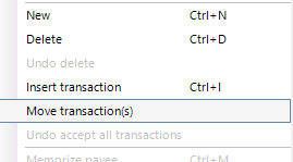 - From the affected account, select all transactions on that account > Right click and select "Move transaction(s)" > From the Move to account dropdown, select the newly added offline account. All transactions should now be in the offline account.