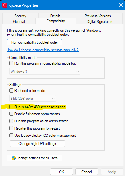 Display resolution issue: One right click on the Quicken Icon in your desktop>Properties>Compatibility>Uncheck the option: Run in 640 x 480 screen resolution.