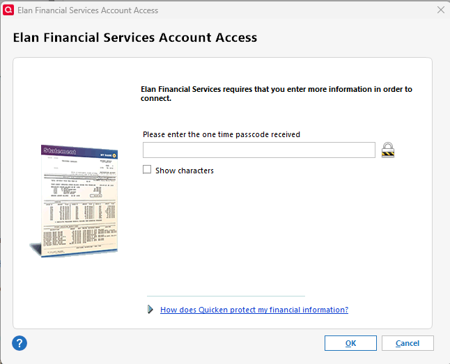 Fidelity Signature Visa (Elan Financial) and Passcode connect requirement in Quicken