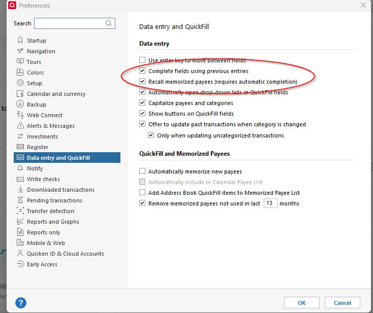 When keying in a Withdraw entry in an Investment account, (entering payee, date, type (for ex "EFT") and amount, the system doesn't save as you entered but saves the entry exactly as it did that LAST time you entered a withdrawal under that payee. You must go in manually and correct it by re-entering the correct data and resaving it.
