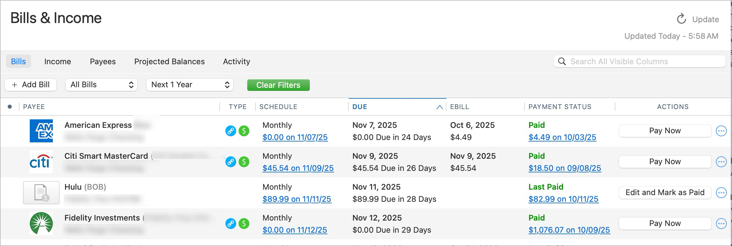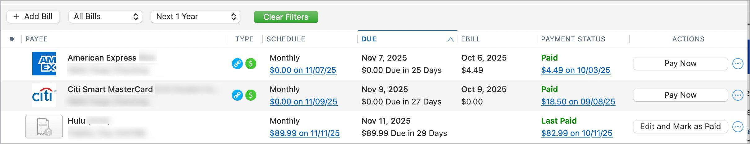 FWIW, QWIN which has a history of Online Biller issues and is NOT due to the new bill aggregator, needed Citi and Amex both to be unlinked, deleted, readded and relinked. Bills showed in the reminders dialogs, but not in Online Bills until the aforementioned remediation. So QMAC working a bit better than Windows now. Hopefully Chase gets adjusted for next month (and second Chase bill this month) and Fidelity comes in tomorrow as anticipated in both. Correction: Fidelity due to come in on the 18th. Should be my next bill and test.