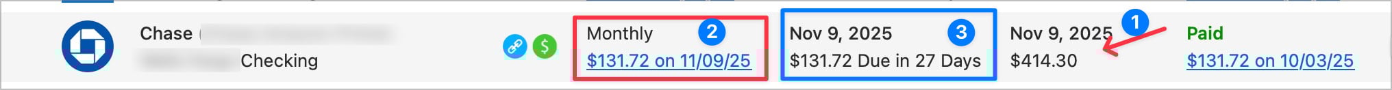 1 is what I would have expected in 3. 3 is last month's bill even though I have ALL instances set to 0.00 as i do with ANY bill that changes each month. Thus 2 should have shown 0.00. 1, btw, is in a column called "eBill".