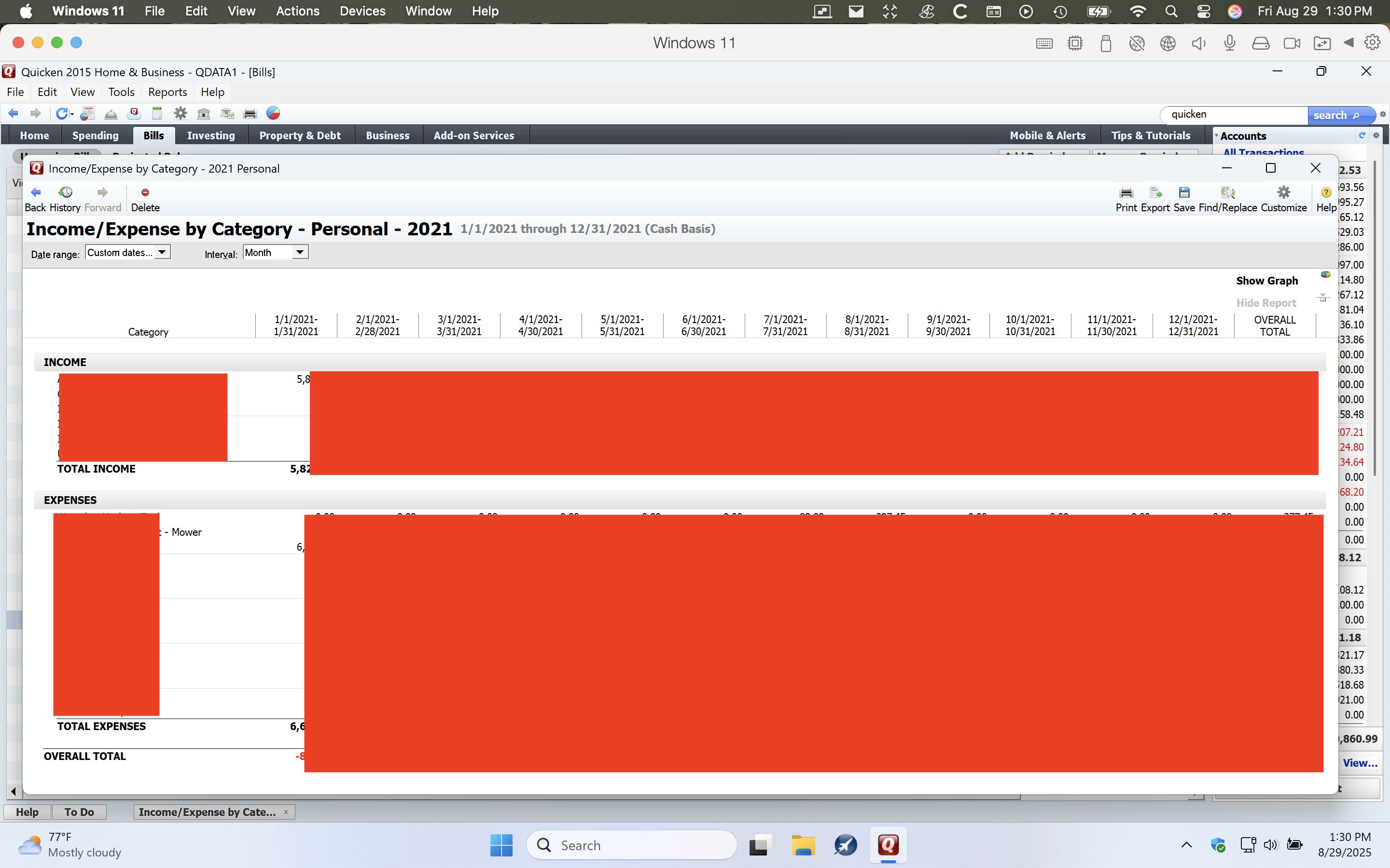 I went into a report to see if I'm going to have to recreate them and sadly I will if I use Quicken Mac exclusively from now on. The reports as I posted the screen shot above are what I normally would need but if I have to go deeper and find info on a specific day or category, that would mean I would have to print many dozens of reports for just 1 year, if I didn't have access to that one complete report in Quicken.