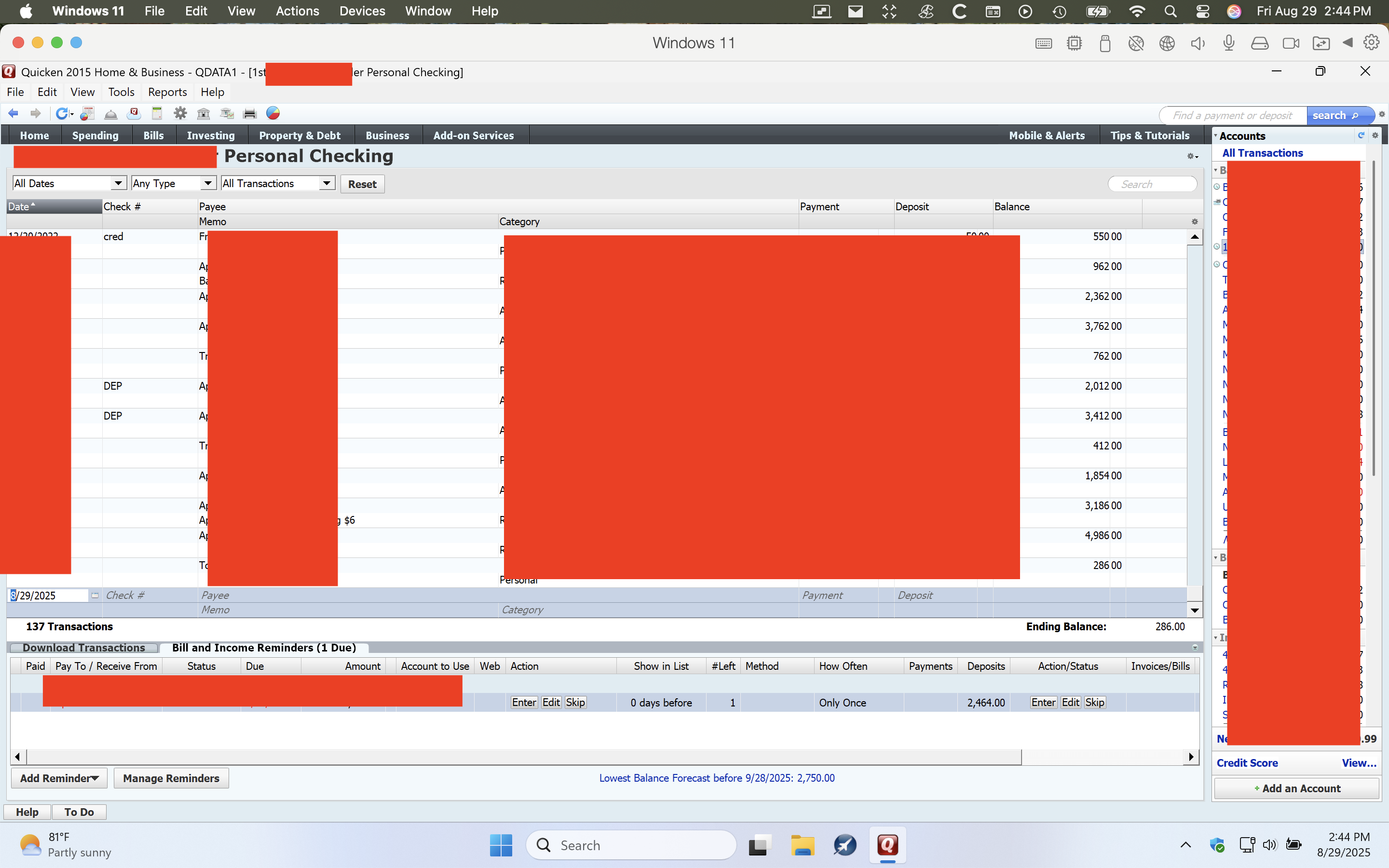 Thank you for all of your comments. More details in case it affects anything, I currently use Quicken 2015 Home & Business Version: R17.4 Build: 24.1.17.4 on a Windows 11-ARM Virtual Machine in Parallels for Mac20. The only "business" I use it for is rent income, so I just have it like any other category for my reports, I don't use the program to generate any business type things, or follow stocks, or use it with any business type categories, or to file taxes or anything like that..