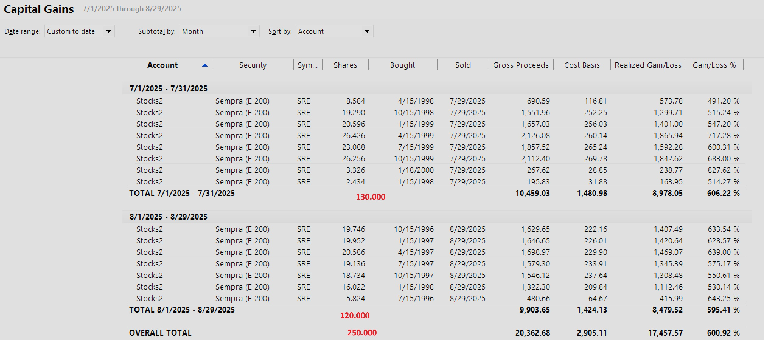 On the Capital Gains Report - on each TOTAL LINE include the total shares.